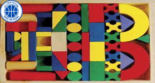 Bằng gỗ. Gồm 51 khối trụ, tam giác, chữ nhật, chữ nhật khuyết cầu, bán nguyệt khuyết cầu, khối chữ X. Khối chuẩn 35x35x35mm. Hộp gỗ 360x310x40mm.